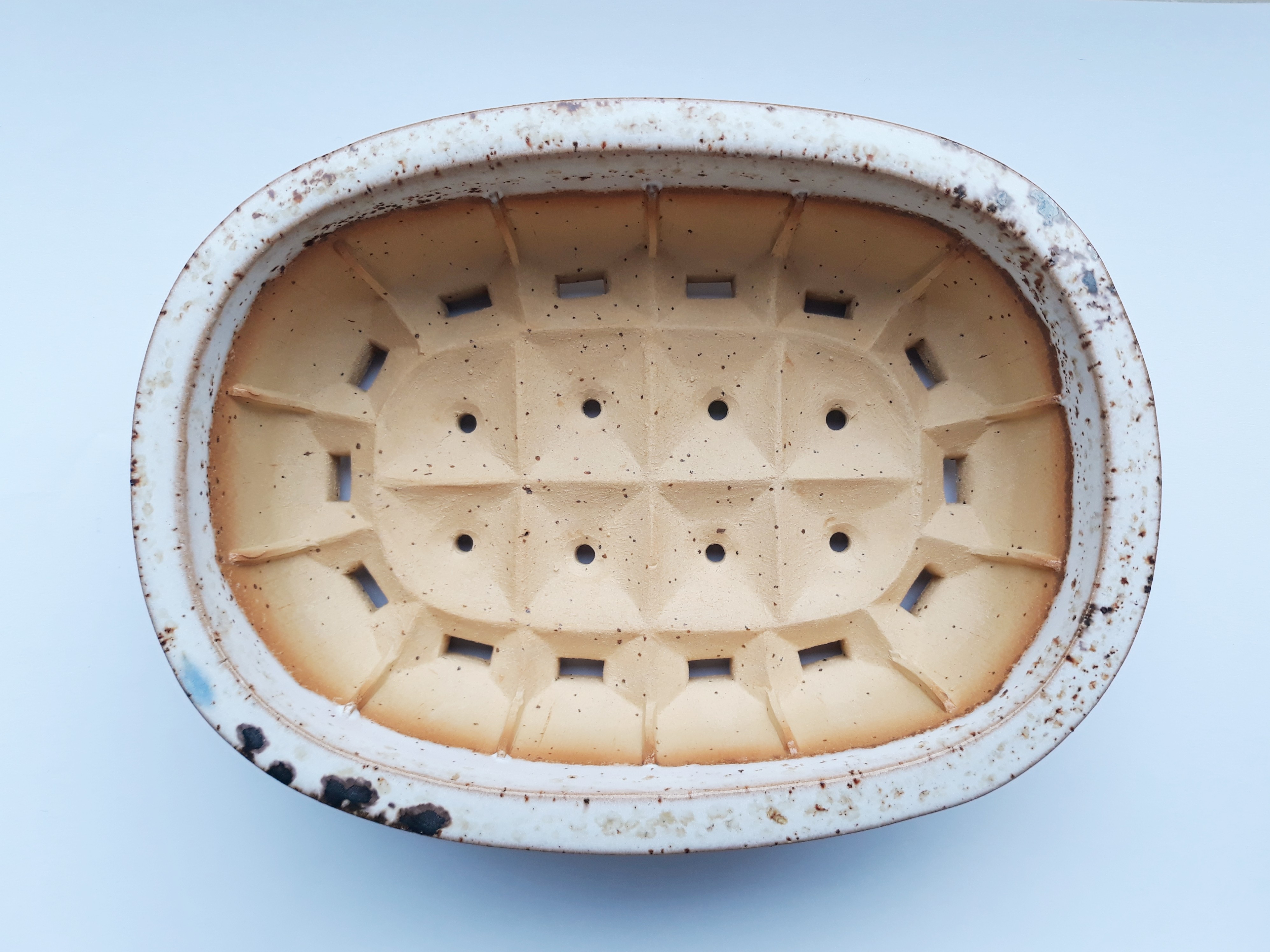 - Glasur: sandfarben/braun/hellblau, glänzend